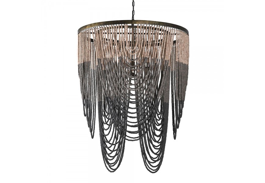 Možno sa to nezdá, ale luster hrá veľkú rolu pri zariaďovaní priestoru a nájsť ten správny luster v môže zabrať veľa času. Preto vam viem povedať, že s luxusným lustrom Counside určite nespravíte chybu a zaručene vám dodá ten “wow” efekt, a nie len vám, ale každému kdo navštívi váš príbytok. Luster je ozdobený z korálok vyrobených z masívneho javorového dreva v troch rôznych odtienoch svetlohnedej, sivej a tmavosivej farby, ktoré ho zdobia po celkom obvode a dodávajú mu tu jedinečnosť, ktorú tento luster ma. Zfarbenie korálkov dodáva dizajn ombré, to znamená že sa farby zlievajú do seba. Status luxusu dodáva aj fakt, že luster je ručne robený. Základna je tvorená z dvoch kovových kruhov v starozlatej farbe. Pripevnenie o strop bude umožnené vďaka reťazi, ktorá dodáva industrialny vzhľad tomuto lustru.