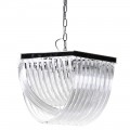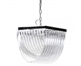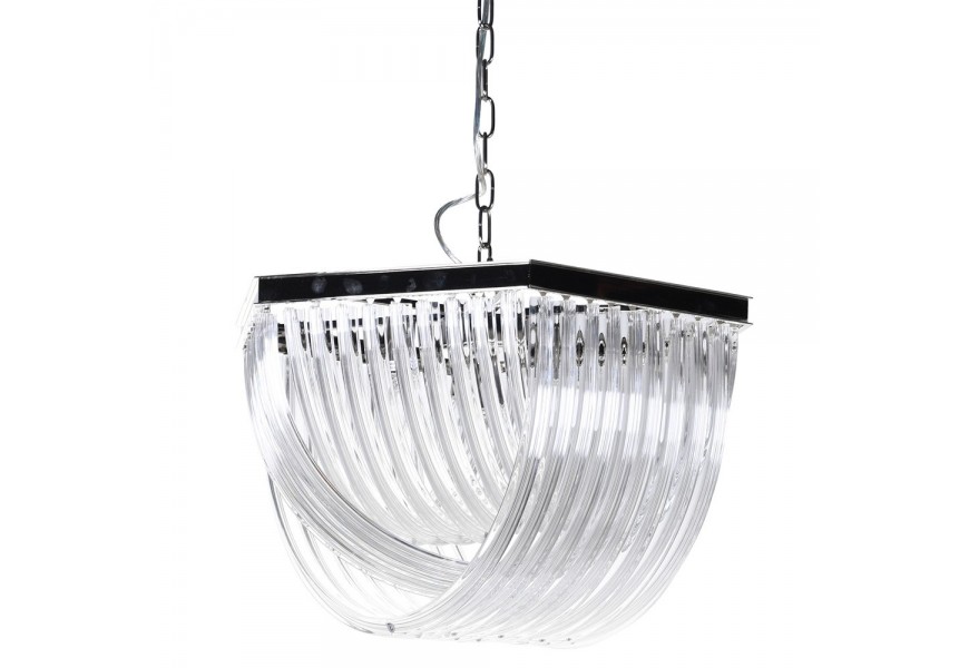 Sklenený dizajnový závesný luster Miray v art deco štýle s kovovou striebornou konštrukciou so sklenenými prútmi 58 cm