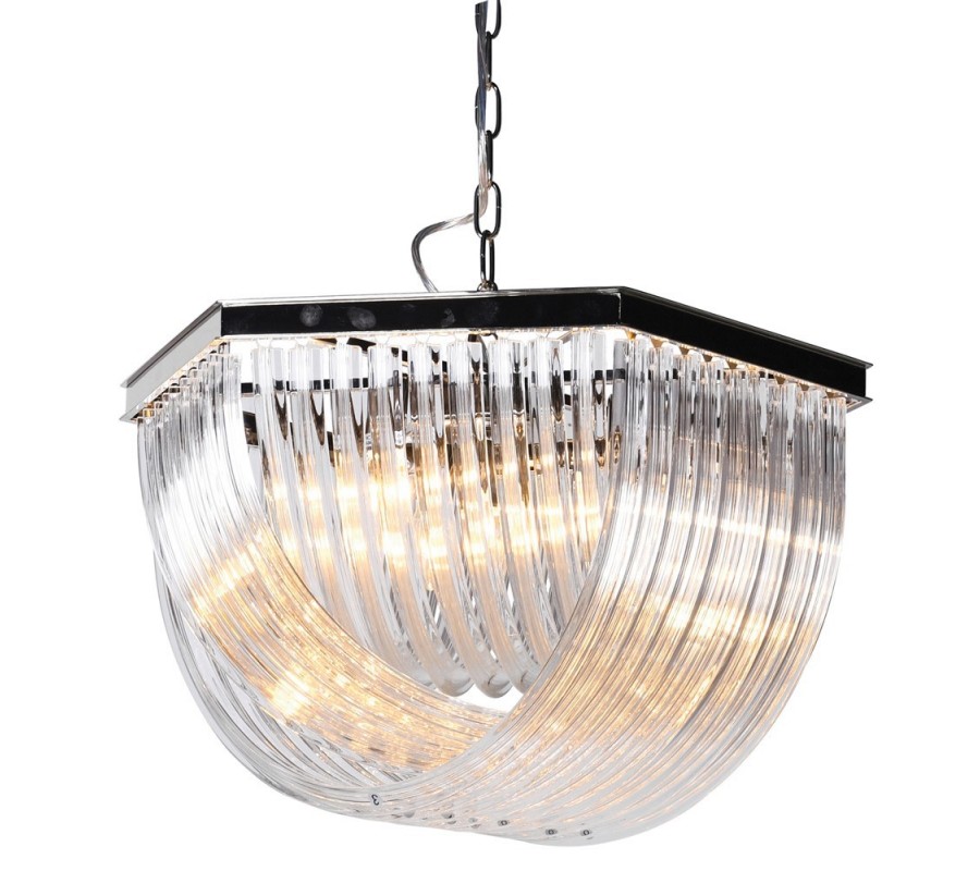 Luster Miray v art deco štýle je výnimočným kúskom osvetlenia, ktorý kombinuje eleganciu a sofistikovanosť. Jeho viacpramenný dizajn a spojenie sklenených a strieborných kovových prvkov vytvára svetelný prvok, ktorý je nielen funkčný, ale aj nápaditý a štýlový. Dizajn sa skladá zo sklenených prútom vytvárajúcich kupoly, ktoré sa navzájom prekrývajú.