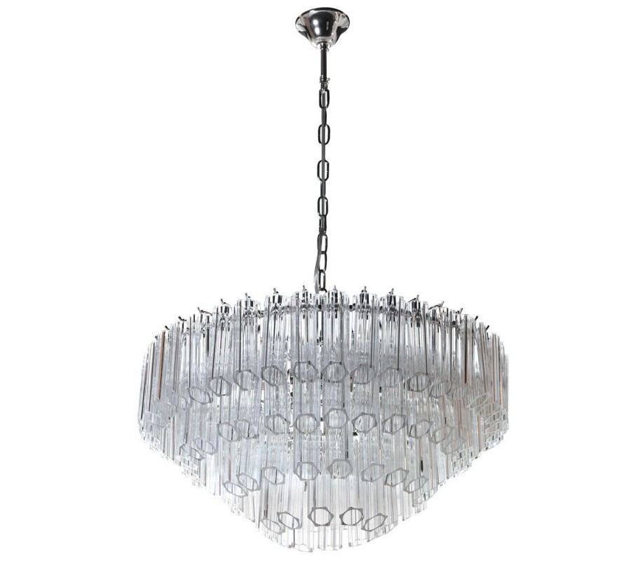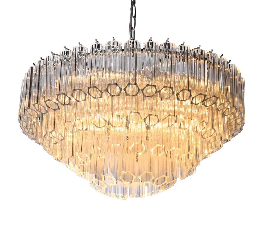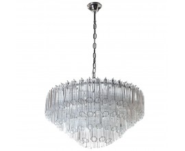 Štvorposchodový rúrkový sklenený luster Amier v art deco štýle je vrcholným dizajnovým kúskom, ktorý dokonale spája eleganciu a modernosť. Jeho jedinečná kombinácia sklenených rúrok a striebornej kovovej konštrukcie vytvára exkluzívny a výrazný vizuálny dojem.