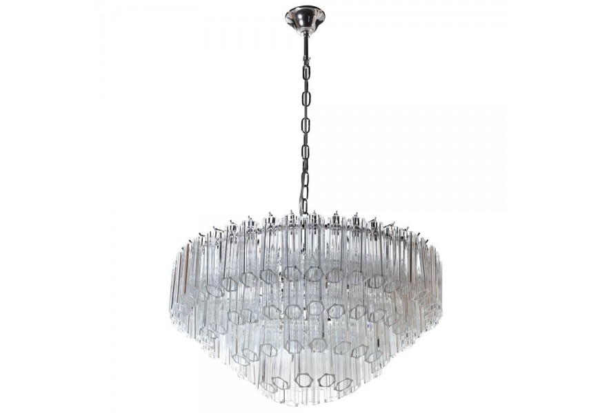 Štvorposchodový rúrkový sklenený luster Amier so striebornou kovovou konštrukciou v art deco štýle 68 cm