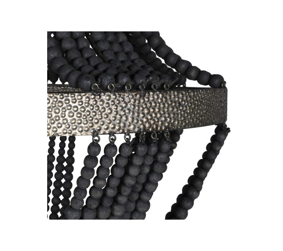 Luster Chamana nesúci sa vo vintage štýle vkusne doplní a zútulní vaše priestory. Jeho dominantným prvkom je bohaté zdobenie v podobe drevených korálkových reťazí v čiernej farbe, ktoré elegantne visí na okrúhlej kovovej konštrukcii. Vzniká tak štýlový vzhľad s vintage nádychom, ktorý doplní praktickú funkciu lustra. Drobné koráliky z dreva tak nahrádzajú funkciu tienidla a príjemne stlmia svetlo žiarovky. Zároveň pôsobia ako estetický doplnok celého dizajnu. Luster Chamana odporúčame umiestniť do vintage či orientálne ladených priestorov v kombinácii s masívnym nábytkom či kontrastnými dekoráciami z kovu.