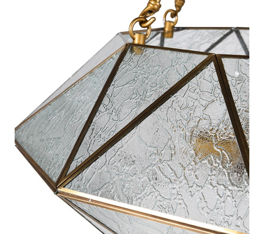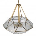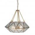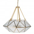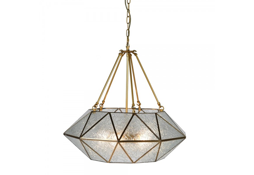 Dizajnová závesná lampa Erin so zlatou geometrickou konštrukciou z kovu a skla 68cm