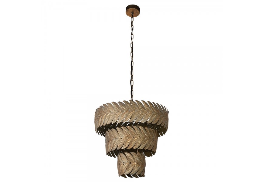 Dizajnová vintage závesná lampa Helecho v starožitnej zlatej farbe s motívom listov paprade 55 cm