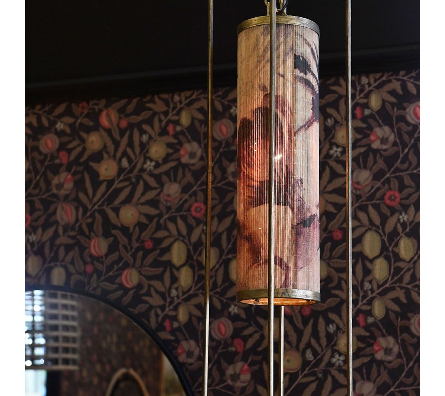 Závesná lampa Gion bude výnimočným doplnkom vašej domácnosti. Očarí vás spojením vintage štýlu s naturálnymi motívmi a materiálmi, ktoré je inšpirované estetikou japonského dekoratívneho umenia.