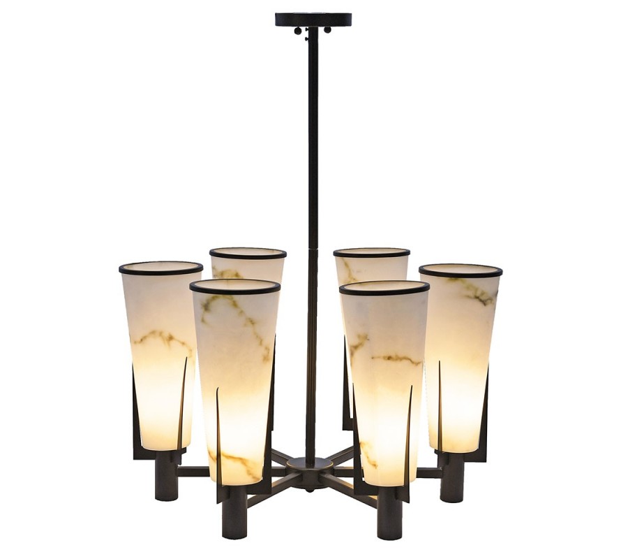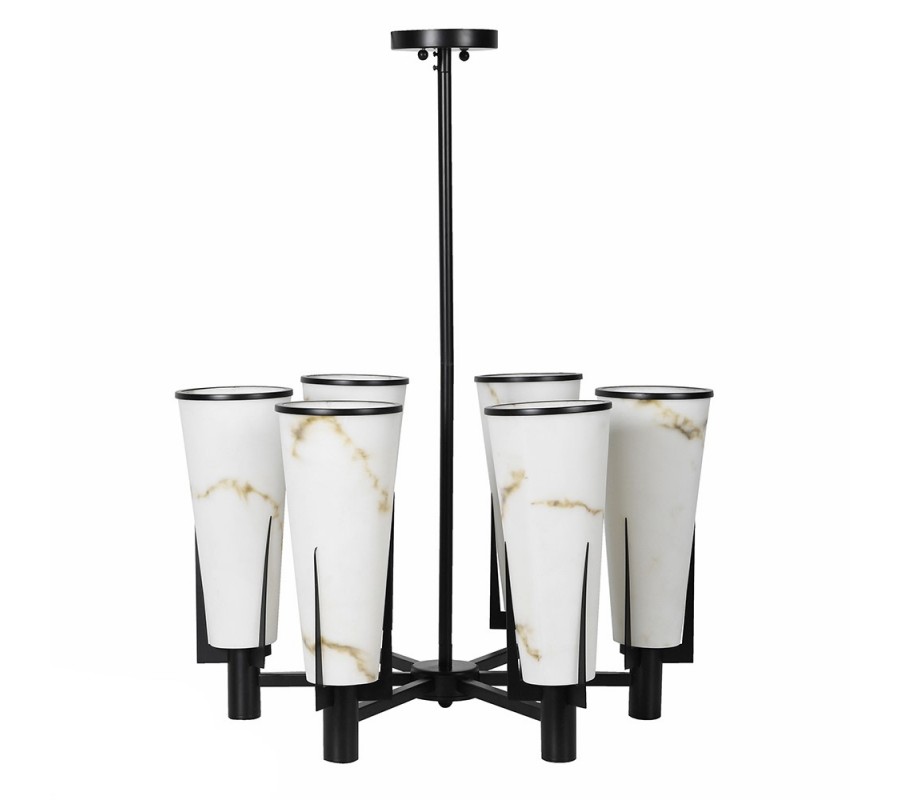 Luxusný moderný šesťramenný luster Lilliana s čiernou matnou konštrukciou a tienidlami s bielym alabastrovým dizajnom 78 cm