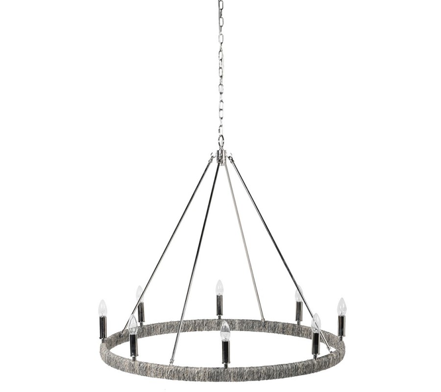 Štýlový závesný kruhový kovový luster Manila v striebornej farbe s ôsmimi žiarovkami 92 cm