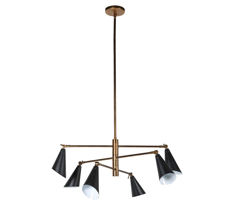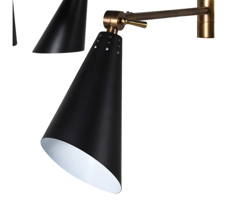 Luster má moderný a minimalistický dizajn s geometrickým usporiadaním. Skladá sa zo šiestich kovových tienidiel v čiernej farbe s matným povrchom, ktoré sú umiestnené na ramenách vychádzajúcich z centrálnej konštrukcie. Vnútro tienidiel je biele, čo pomáha lepšie odrážať svetlo. Každé tienidlo je upevnené na nastaviteľných kĺboch, čo umožňuje nasmerovať svetlo podľa potreby.
