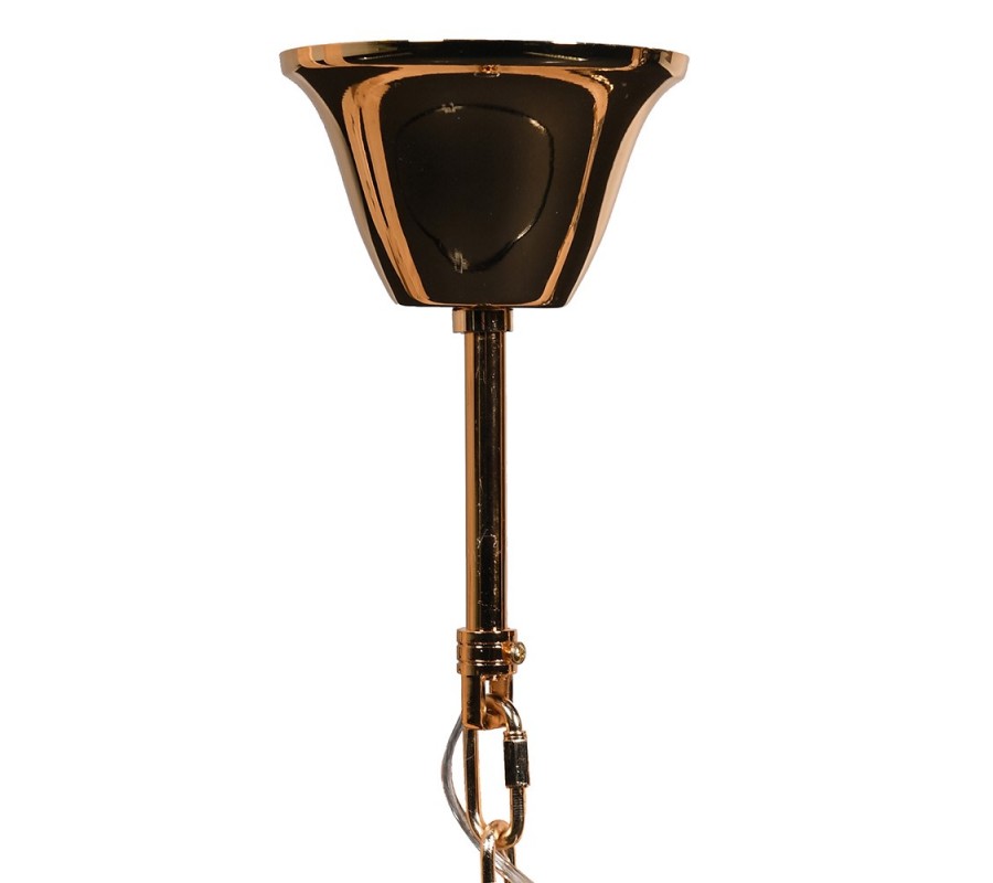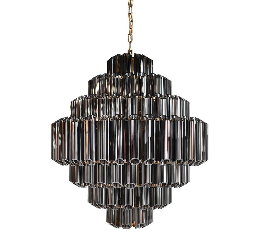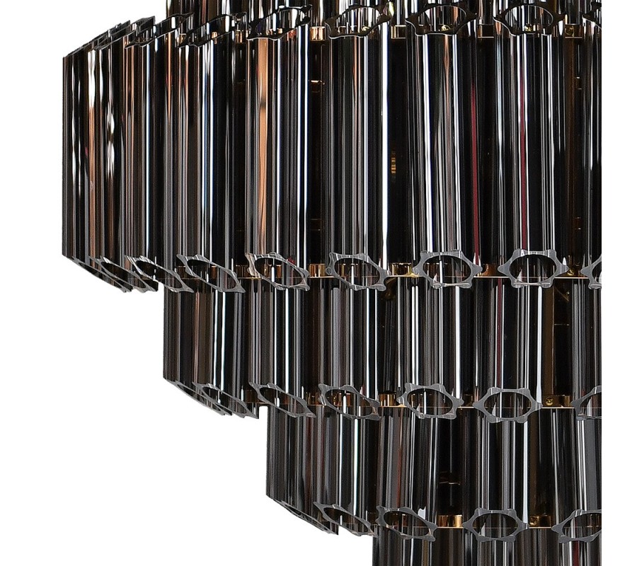 Tienidlo je vyrobené zo skla v čiernej farbe a pevne uchytené na kovovej konštrukcii, ktorá obsahuje úchytky na 20 žiaroviek typu E12. Luster je upevnený na retiazke, cez ktorú vedie aj elektrický kábel a celková výška svietidla spolu so závesným mechanizmom je 123 cm. Kovové časti majú metalické zlaté prevedenie, vytvárajúce luxusný akcent k čiernemu sklu.
