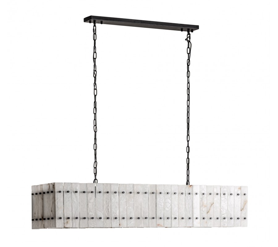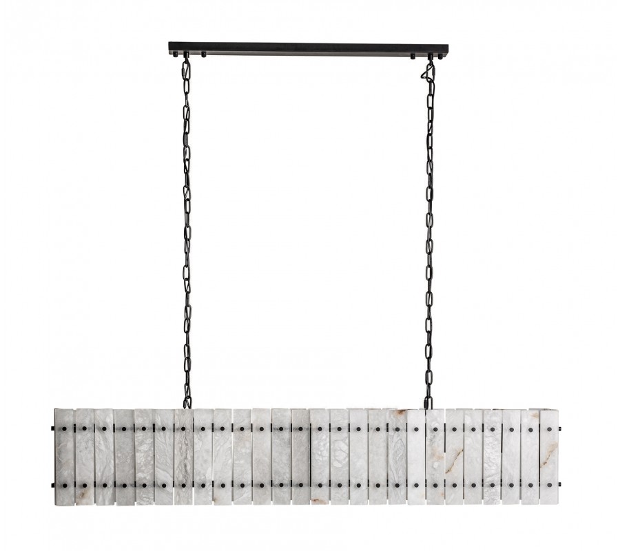 Luxusný industriálny mramorový obdĺžnikový závesný luster Sara s bielymi doštičkami kovovou s kovovou konštrukciou 142 cm