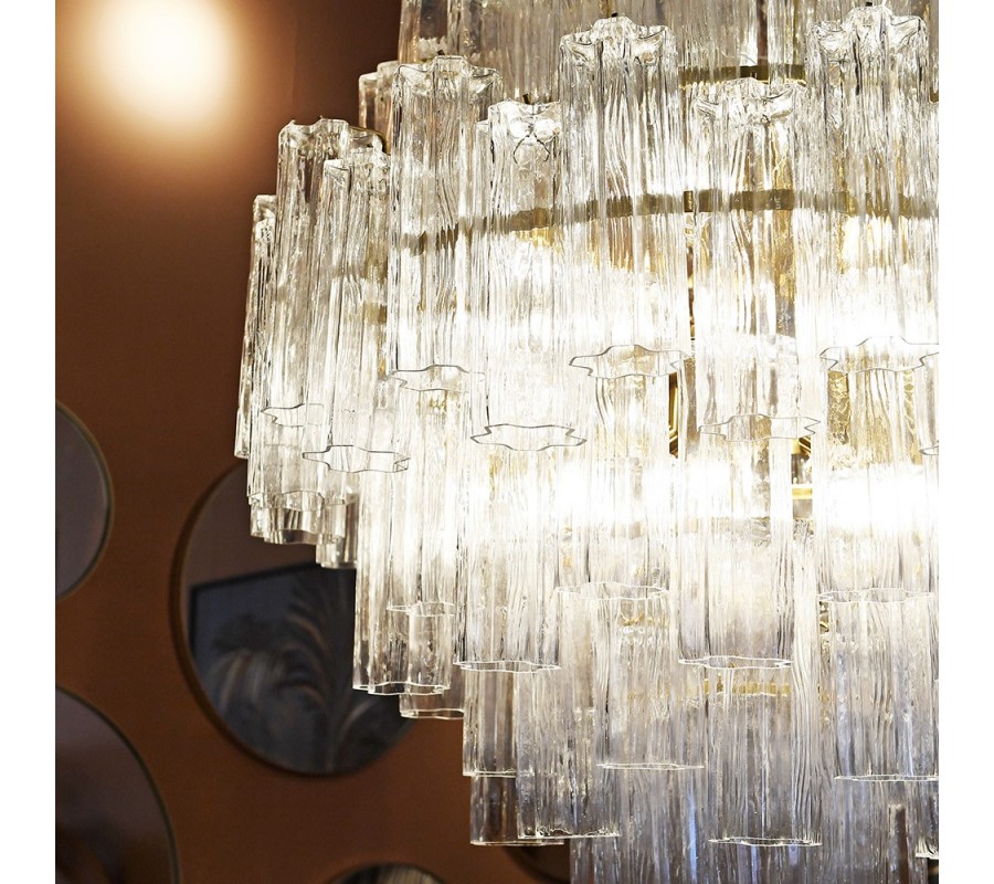 Luster Ayva výborne doplní luxusnú obývačku či jedáleň s vysokým stropom zariadenú v glamour štýle. Vynikne nad mramorovým stolom so zlatou podstavou či v kombinácii so sedačkami s farebným zamatovým alebo buklé poťahom. Hodí sa tiež do reprezentatívnych priestorov, predsiene alebo na schodisko, kde vytvorí pocit honosnej elegancie a vďaka svojej pôsobivej veľkosti bude vizuálnou dominantou interiéru.