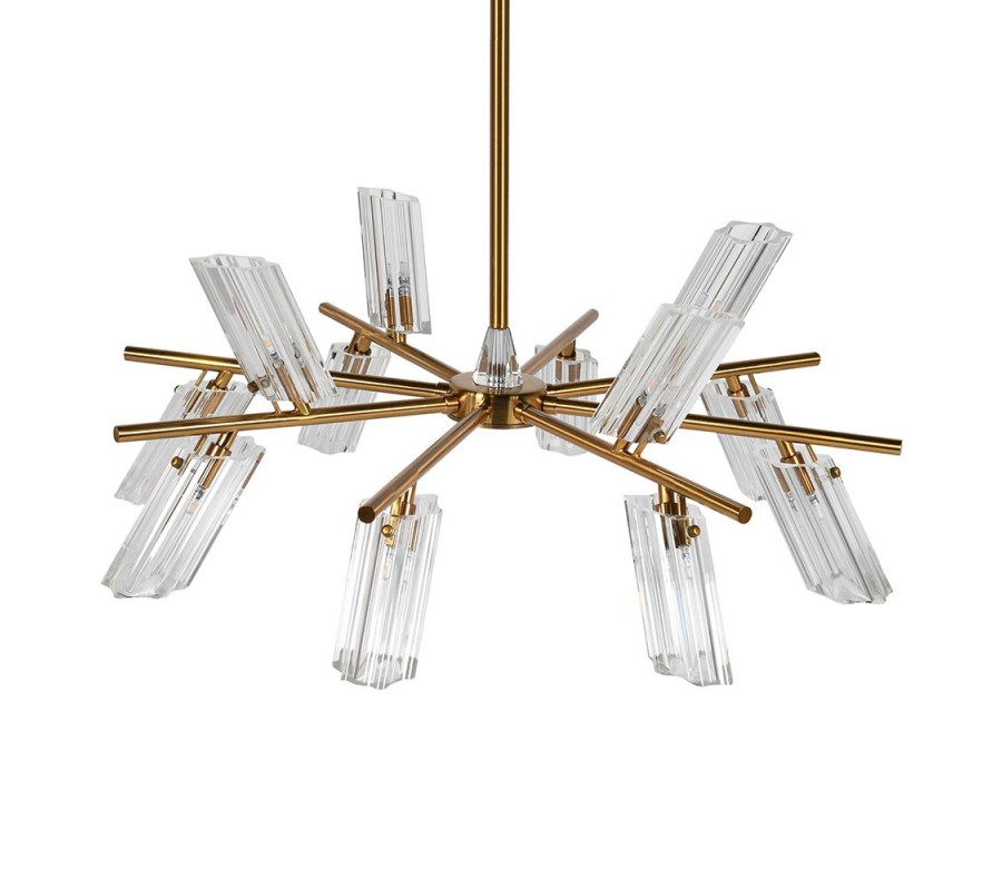 Luxusný glamour stropný luster Kilina v mosadznej farbe z kovu s 12 sklenenými vrúbkovanými tienidlami 80 cm