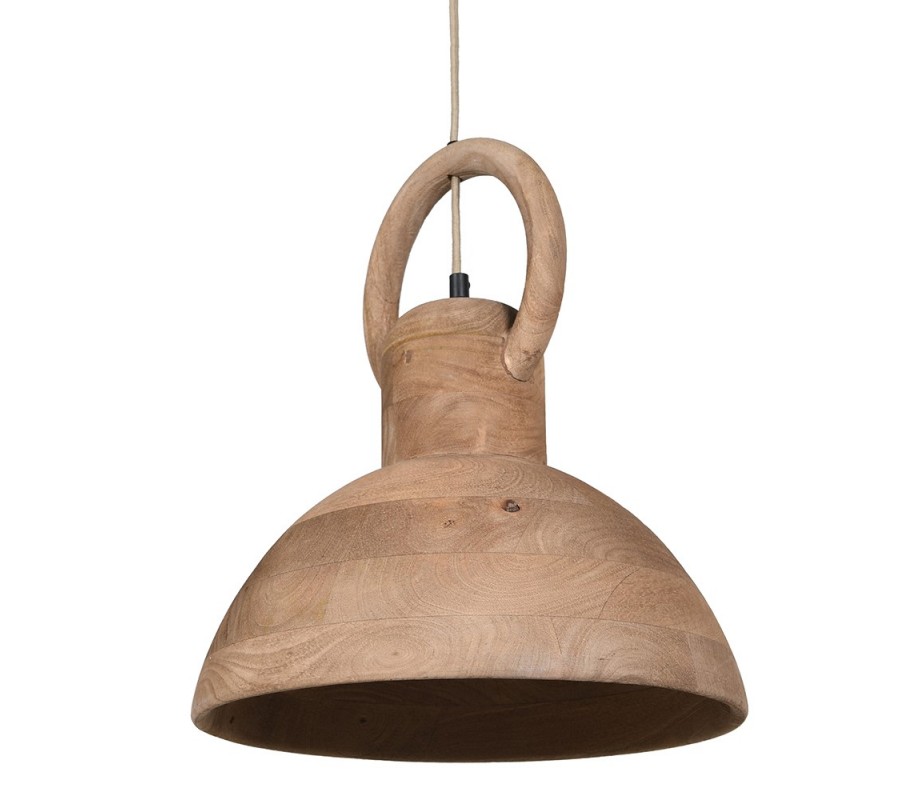 Vidiecky závesný luster Orilt z masívneho mangového dreva pôsobí prirodzene, teplo a autenticky. Jeho oblá, okrúhla silueta v hnedom odtieni zvýrazňuje krásu prírodného materiálu a výraznú kresbu letokruhov, ktorá robí z každého kusu originál. Hladký povrch dreva necháva vyniknúť štruktúru materiálu a dodáva svietidlu nadčasový, remeselný charakter.