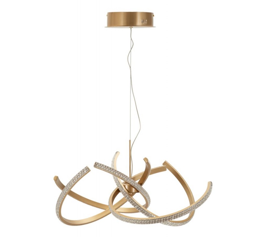 Moderný glamour LED luster Elestra so zlatou kovovou konštrukciou s dizajnom prepletených poloblúkov 120 cm