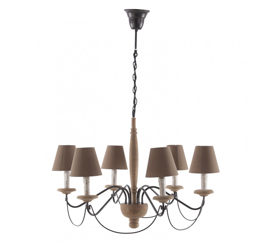Štýlový luster NATURAL je elegantným a klasickým doplnkom, ktorý vyčarí vo vašom interiéri príjemnú a útulnú atmosféru. Konštrukciu lustra v kombinácii svetlého dreva a kovu tvorí šesť elegantných ramien, na ktorých sú zasadené jednoduché tienidlá. Mimoriadne vhodne doplní najmä rustikálne alebo vidiecky ladené priestory.