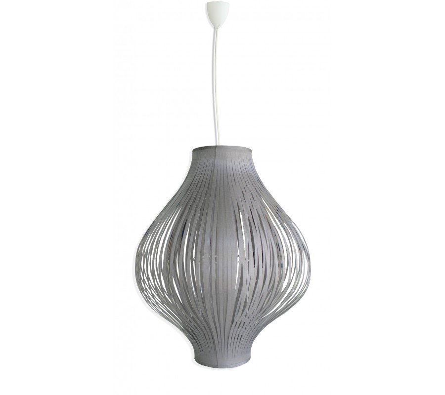 Silueta lampy má cibuľový tvar, s úzkou vrchnou a spodnou časťou, ktoré v elegantnej krivke prechádzajú do rozšírenej strednej časti. Konštrukcia svietidla je zhotovená z pevného plastu v bielej farbe a udržiava delikátny tvar textilného tienidla. Tienidlo je zložené z vertikálne umiestnených pruhov látky, ktoré vytvárajú moderný lineárny dizajn. Maximálna dĺžka prívodného kábla je 70 cm a je potrebná žiarovka typu E27, ktorá nie je súčasťou balenia.