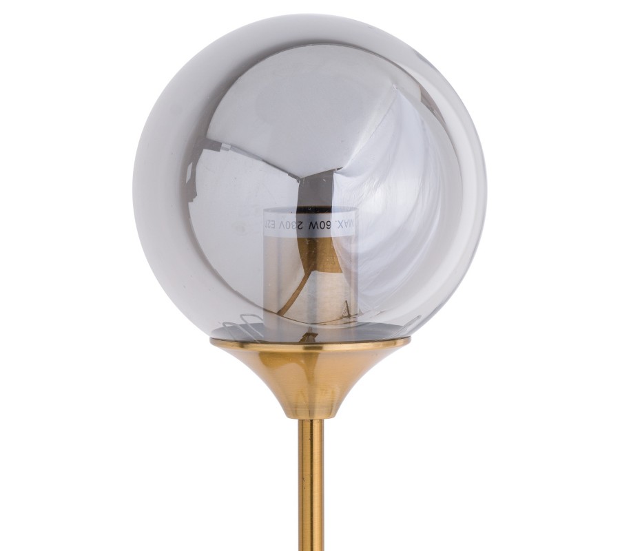 Dizajnová nástenná lampa Globe očarí najmä milovníkov moderného interiérového dizajnu. Jej kovová konštrukcia je vyrobená z mosadze a svojím tvarom pripomína kráľovské žezlo. Lesklé zlaté prevedenie v kombinácii s dymovým motívom dodáva lampe Globe nádych luxusu. Jej elegancia najlepšie vynikne v moderne zariadených interiéroch a v domácnostiach ladených v art-deco štýle. Odporúčame ju doplniť kovovými či sklenými dekoráciami a zladiť s tmavším masívnym nábytkom.