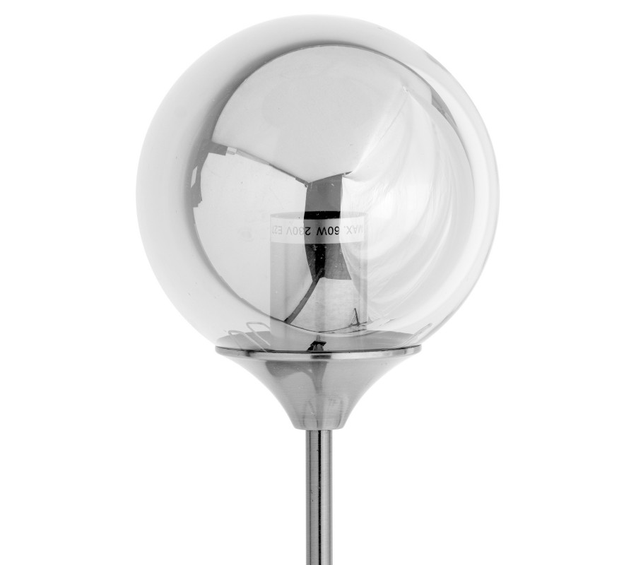 Dizajnová nástenná lampa Globe zaujme najmä nadšencov moderného interiérového dizajnu. Jej konštrukcia je vyrobená z kovu a svojím zaujímavým tvarom pripomína kráľovské žezlo. Kombinácia lesklej striebornej farby a dymového motívu dodáva lampe Globe nádych luxusu a elegancie. Krásne doplní moderne zariadené interiéry a domácnosti ladené v art-deco štýle. Odporúčame ju kombinovať s kovovými a sklenými dekoráciami či svetlejším masívnym nábytkom.