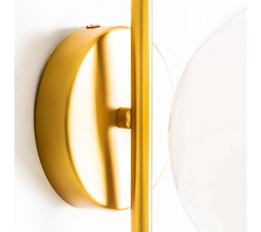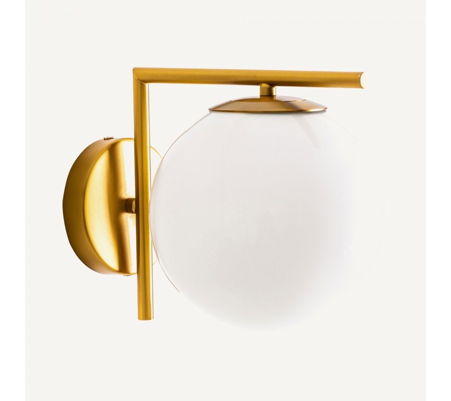 Hľadáte do vašich priestorov svietidlo, ktoré vašej miestnosti dodá dostatok svetla a zároveň ju esteticky doplní? Zaujať vás môže nástenná lampa Sally, ktorá sa pýši elegantným dizajnom v štýle art deco. Lmpa je tvorená zlatou kovovou konštrukciou s okrúhlym skleneným tienidlom bielej farby. Súhra jednoduchých geometrických tvarov, kvalitných materiálov a luxusnej farebnosti vytvára honosný glamour vzhľad. Nástenná lampa Sally vhodne zapadne najmä luxusné art deco spálne, obývačky či pracovne. Odporúčame ju umiestniť na kontrastné tmavé steny, a kombinovať s kovovým či skleneným nábytkom. Do lampy je vhodná žiarovka typu E14 max 25W.