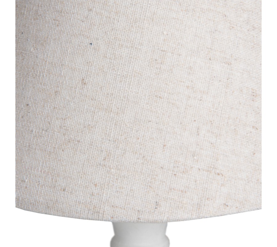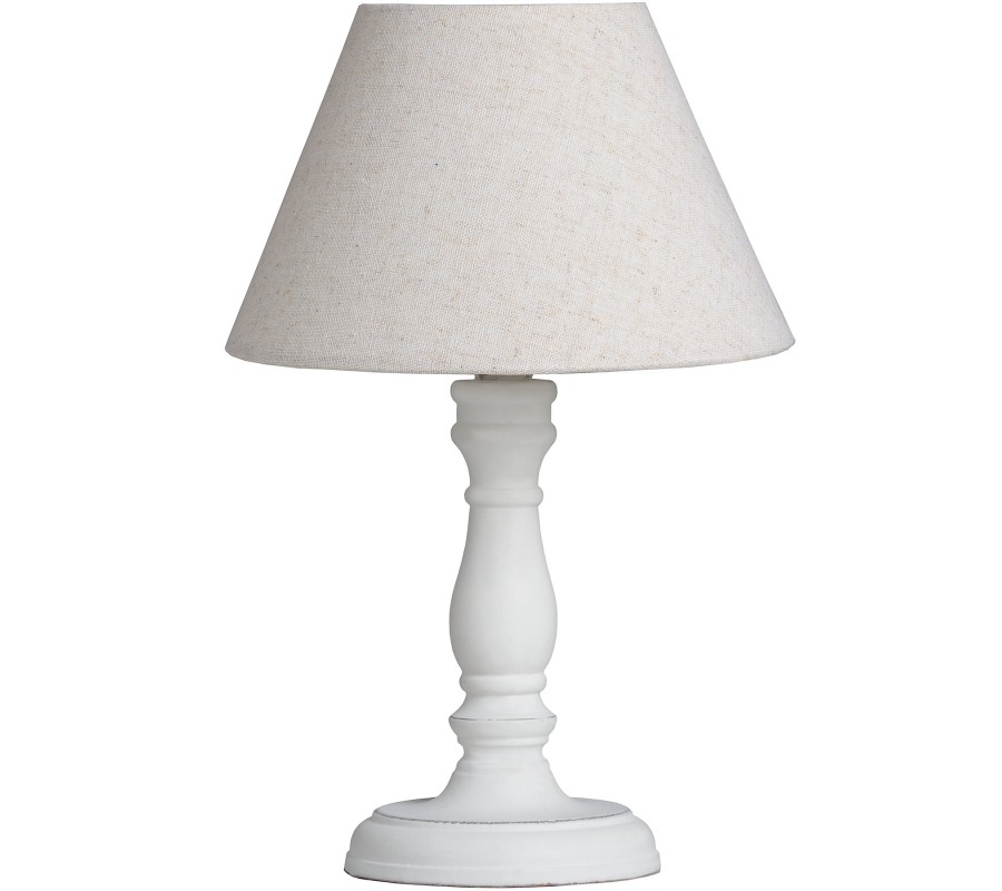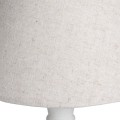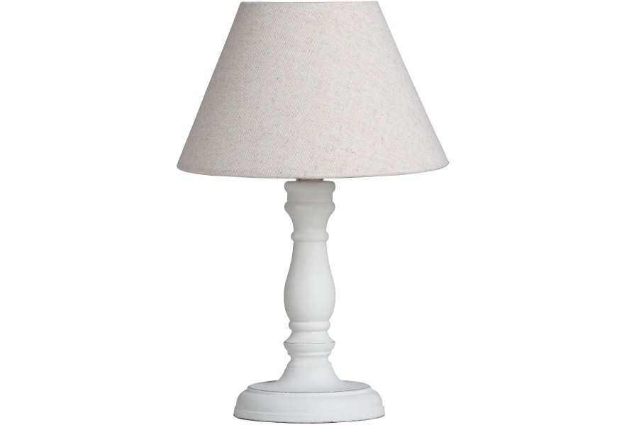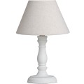 Provensálska biela nočná lampa CYRENE s drevenou vyrezávanou podstavou a ľanovým tienidlom 30cm