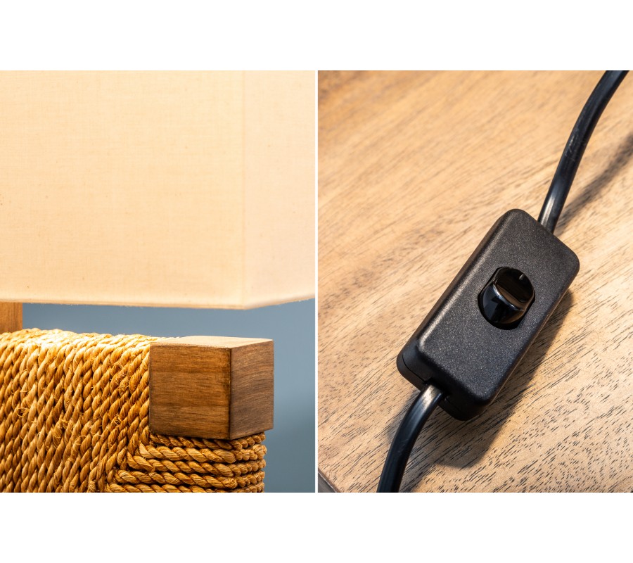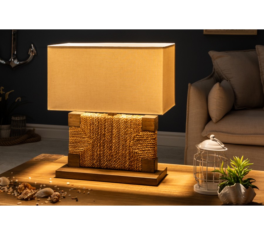 Dizajnová stolná lampa z kolekcie Countryside predstavuje nádherný a neprehliadnuteľný doplnok interiéru, ktorý je vďaka svojmu modernému prevedeniu v kombinácii s prírodnými materiálmi vhodný rovnako do moderných, ale napríklad aj vidiecky zariadených interiérov. Podstavec lampy z borovicového masívu štýlovo dopĺňa manilské konope. Lampa je prispôsobená žiarovkám E27 s maximálnym výkonom 60w energetických tried A++ až E. Žiarovka nie je súčasťou balenia. Výška lampy cca 46cm