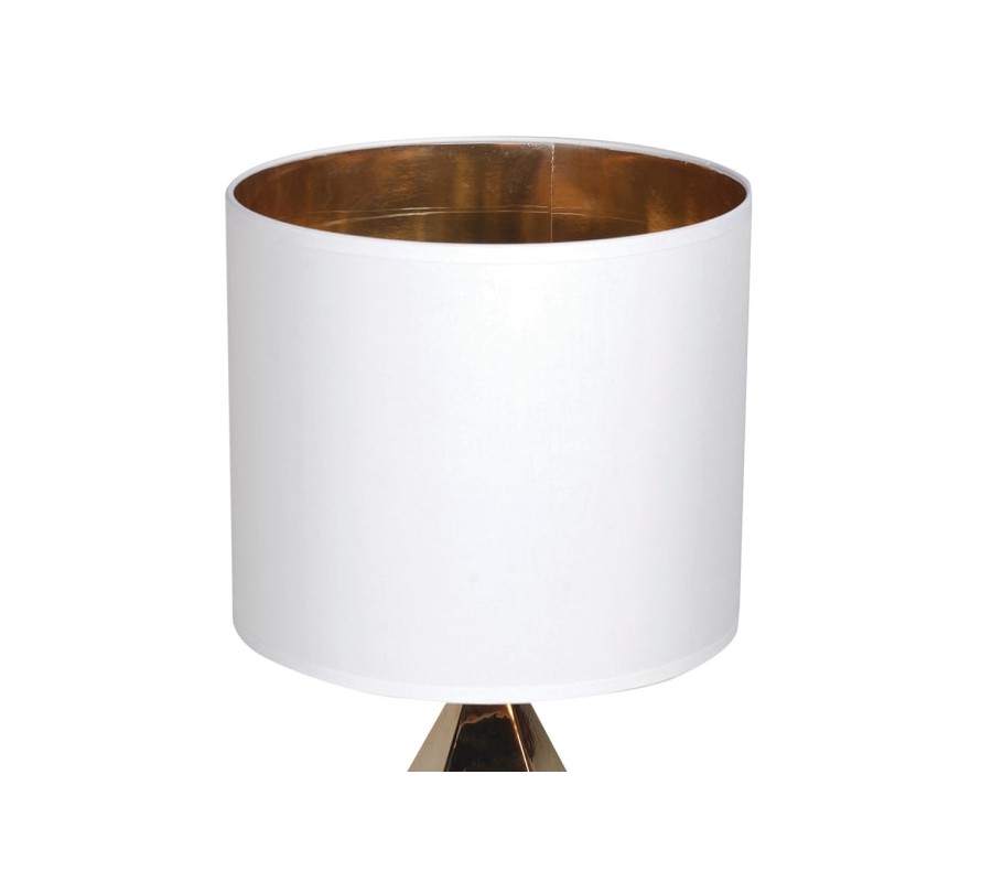 Elegantná nočná lampa Seymour sa vyznačuje svojím dizanovým prevedením v štýle art-deco. Disponuje nádhernou keramickou podstavou geometrických tvarov pripomínajúcou obrúsený diamant, ktorá sa nesie v lesklej zlatej farbe. Dopĺňa ju jednoduché biele textilné tienidlo okrúhlych tvarov, ktoré je z vnútornej strany potiahnuté reflexnou zlatou fóliou dodávajúcou svetlu jedinečný teplý nádych. Nadčasovosť a elegancie lampy Seymour doplnia priestory moderných obývačiek či spální a vnesú do vášho interiéru nádych štýlu art-deco. Vhodnú kombináciu vytvoria s kovovým alebo skleneným nábytkom, doplnkami so zrkadlovým efektom či výraznými zlatými dekoráciami geometrických tvarov. Do lampy sú vhodné žiarovky typu E27 max 60W.
