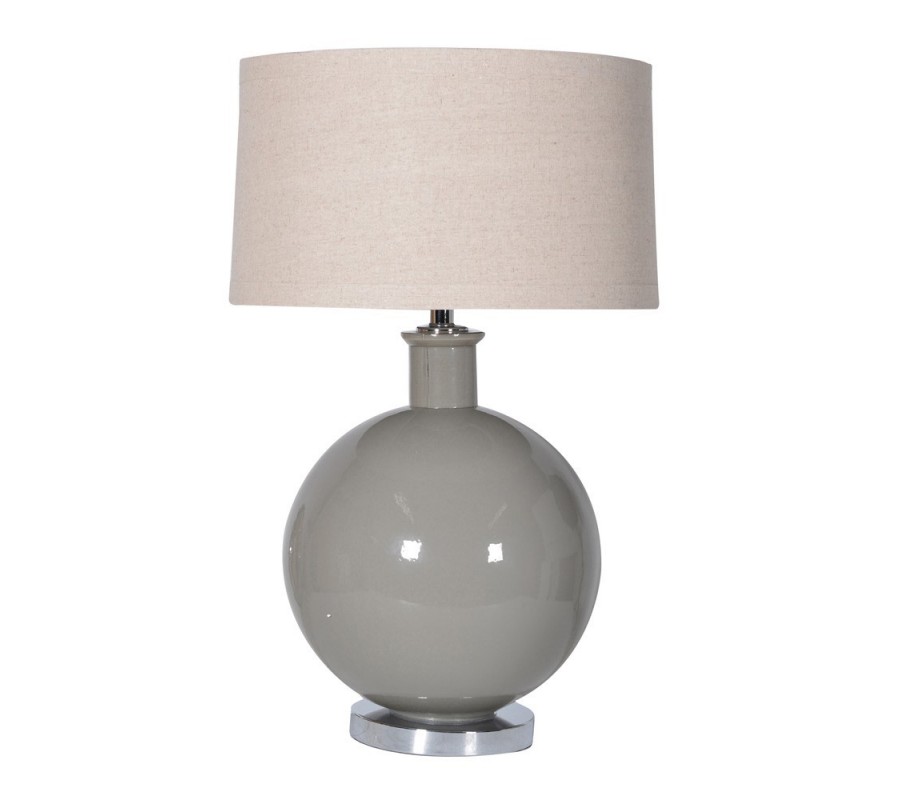 Stolová lampa zaujme kombináciou prírodných a moderných prvkov, ktoré jej dodávajú univerzálny a štýlový vzhľad. Noha lampy má tvar dokonalej gule vyrobený z keramiky, pričom jej lesklý povrch v jemnom sivohnedom odtieni pôsobí elegantne a nadčasovo. Tienidlo valcového tvaru je z jemnej ľanovej látky v prírodnej béžovej farbe, ktorá príjemne rozptyľuje svetlo a vytvára útulnú atmosféru. Kovové detaily, ako napríklad podstava, pridávajú lampe moderný lesk a zvýrazňujú jej kvalitné spracovanie.