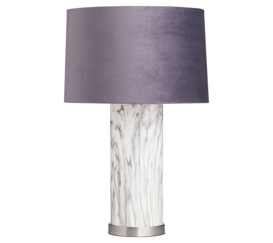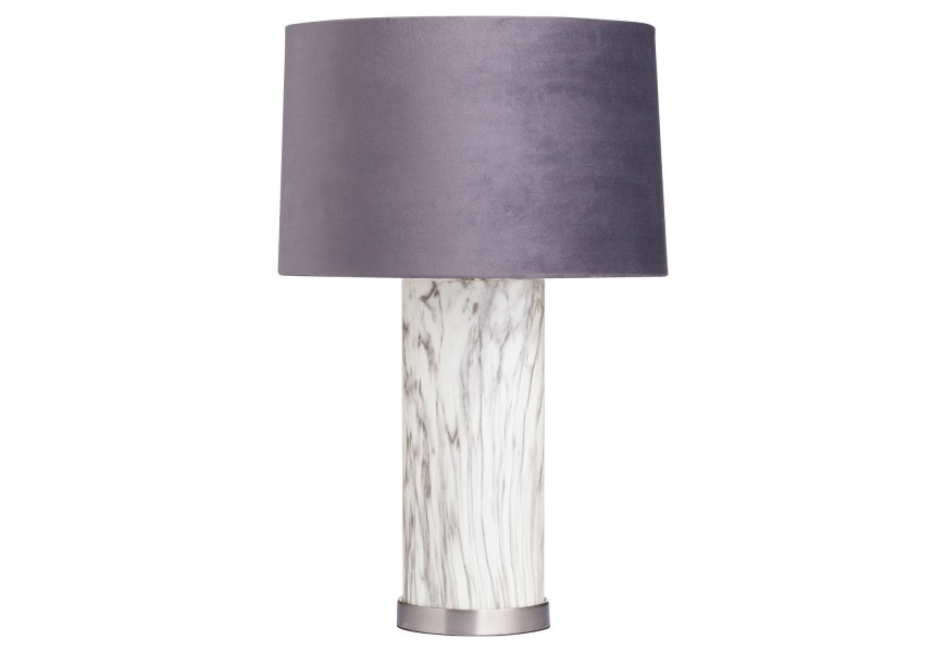 Nadčasová a dizajnová stolná lampa Arigentte v art-deco Vás oslní svojím nádherným prevedením. Kombinácia skleneného podstavca s mramorovým povrchom a zamatového tienidla sivej farby pôsobí veľmi vkusne a nadčasovo a dokonale s bude vynímať najmä v priestoroch ako obývačky, kancelárie či haly ladené v štýle art-deco s jemnou belasou farebnosťou a chrómovými doplnkami.