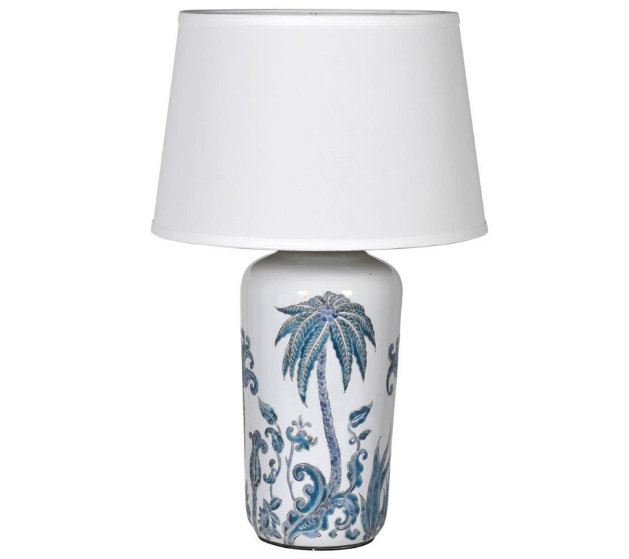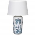 Keramická orientálna stolná lampa Manaca s modrým vzorom palmy 61cm