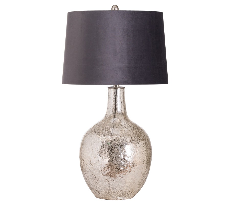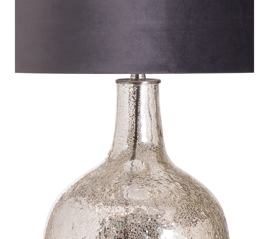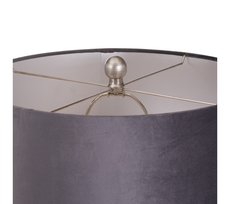 Štýlová strieborná keramická stolná lampa Concento so šedým zamatovým tienidlom 78cm