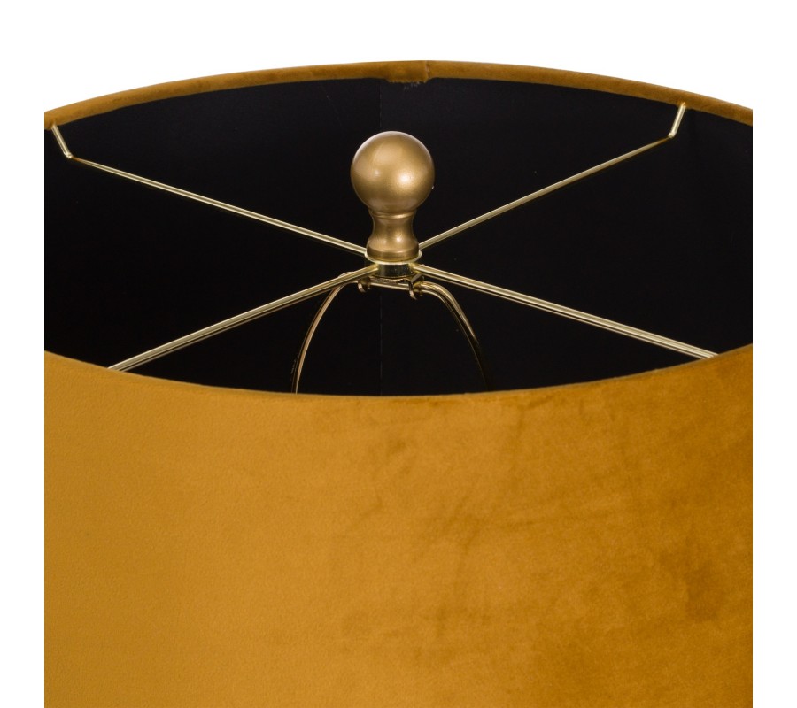 Art-deco dizajnová čierna stolná lampa Abejo s tienidlom horčicovej farby