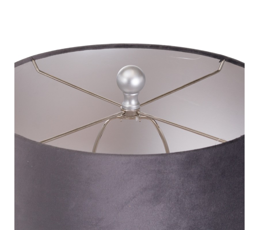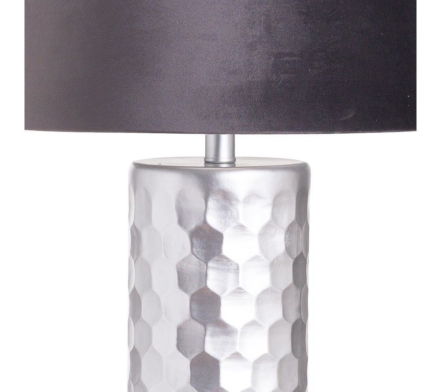 Štýlová stolná lampa Alminar I sa nesie v art-deco štýle, ktorý rozjasní vašu obývaciu miestnosť či spálňu. Na prvý pohľad vás zaujme najmä dizajnovým strieborným podstavcom z keramiky, ktorý disponuje zaujímavým reliéfom pripomínajúcim včelie plásty. Podstavec je kontrastne skombinovaný čiernym zamatovým tienidlom. Vďaka tejto univerzálnej farebnosti možno lampu Alminar I poľahky doladiť do rôznofarebných miestností. Ideálne vynikne v svetlejších interiéroch zariadených v art-deco štýle.
