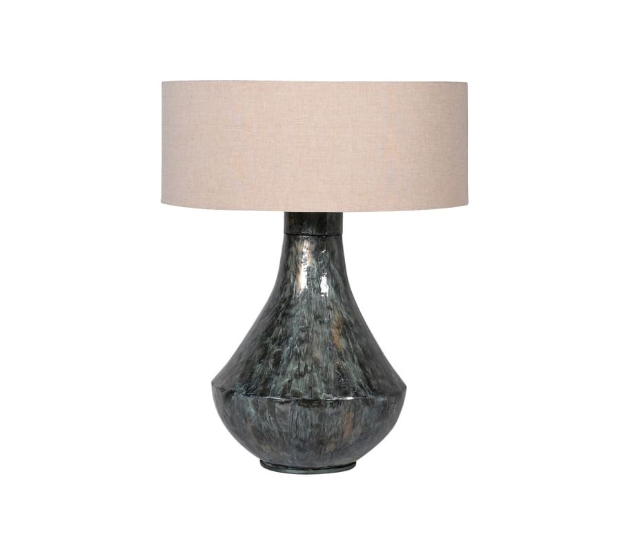 Dizajnová nočná lampa Belami predstavuje unikátne svietidlo, ktoré okrem praktickej funkcie elegantne doplní priestor vašej spálne. Lampa disponuje keramickou podstavou, ktorej povrchová úprava sa nesie v čiernych a sivomodrých odtieňoch pripomínajúcich večernú oblohu. Elegantný tvar a unikátna farebnosť podstavy je doplnená jednoduchým okrúhlym textilným tienidlom v svetlom béžovom odtieni. Tento kúsok s jemným nádychom vintage štýlu príjemne doplní masívne či sklenené nočné stolíky a spríjemní vám chvíle večerného oddychu pri knihe či šálke čajú. Do lampy sú vhodné žiarovky typu B22 max 40W.