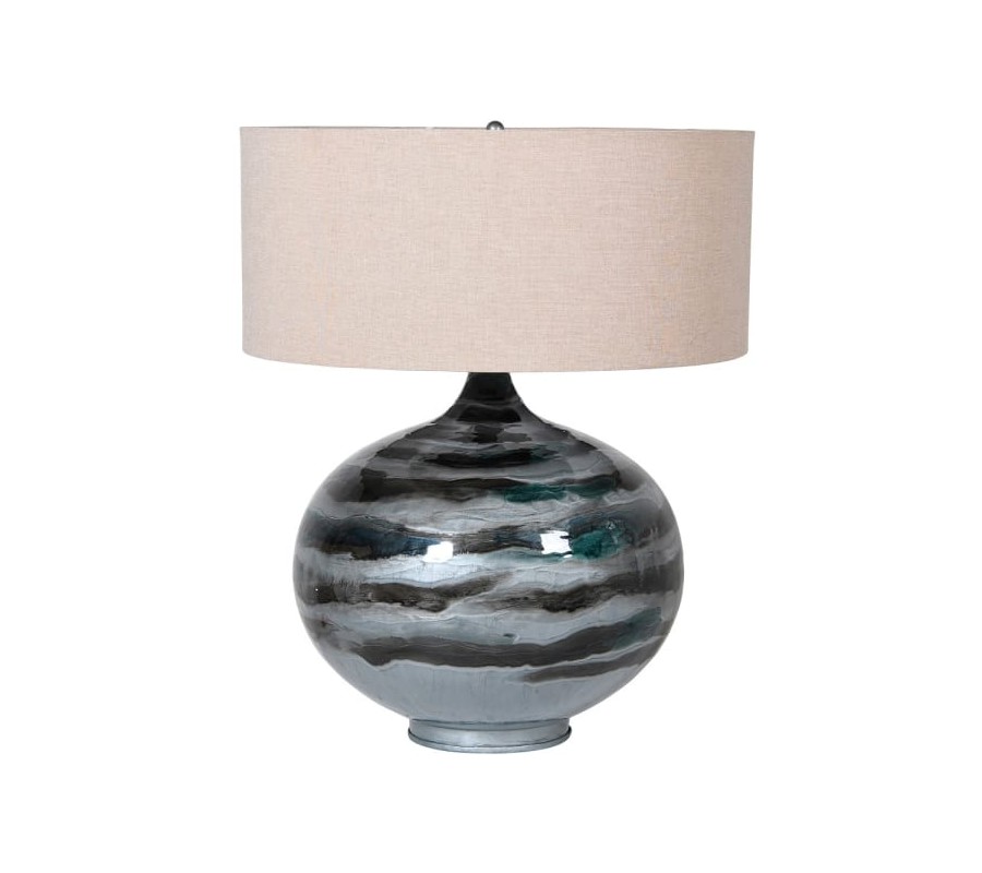 Ak do svojej spálne hľadáte štýlové svietidlo, ktoré okrem praktickej funkcie aj elegantne doplní vaše priestory, nočná lampa Belami môže byť pre vás tým pravým kúskom! Lampa disponuje okrúhlou keramickou podstavou, ktorej povrchová úprava sa nesie odtieňoch sivej, modrej a čiernej. Nádherný dizajn pripomínajúci akverelovú maľbu dodáva lampe jedinečný elegantný nádych vintage štýlu. Dizajnový tvar a unikátnu farebnosť podstavy dopĺňa jednoduché okrúhle textilné tienidlo v svetlom béžovom odtieni. Lampa Belami príjemne doplní masívne či sklenené nočné stolíky a spríjemní vám chvíle večerného oddychu pri knihe či šálke čajú. Do lampy sú vhodné žiarovky typu B22 max 40W.