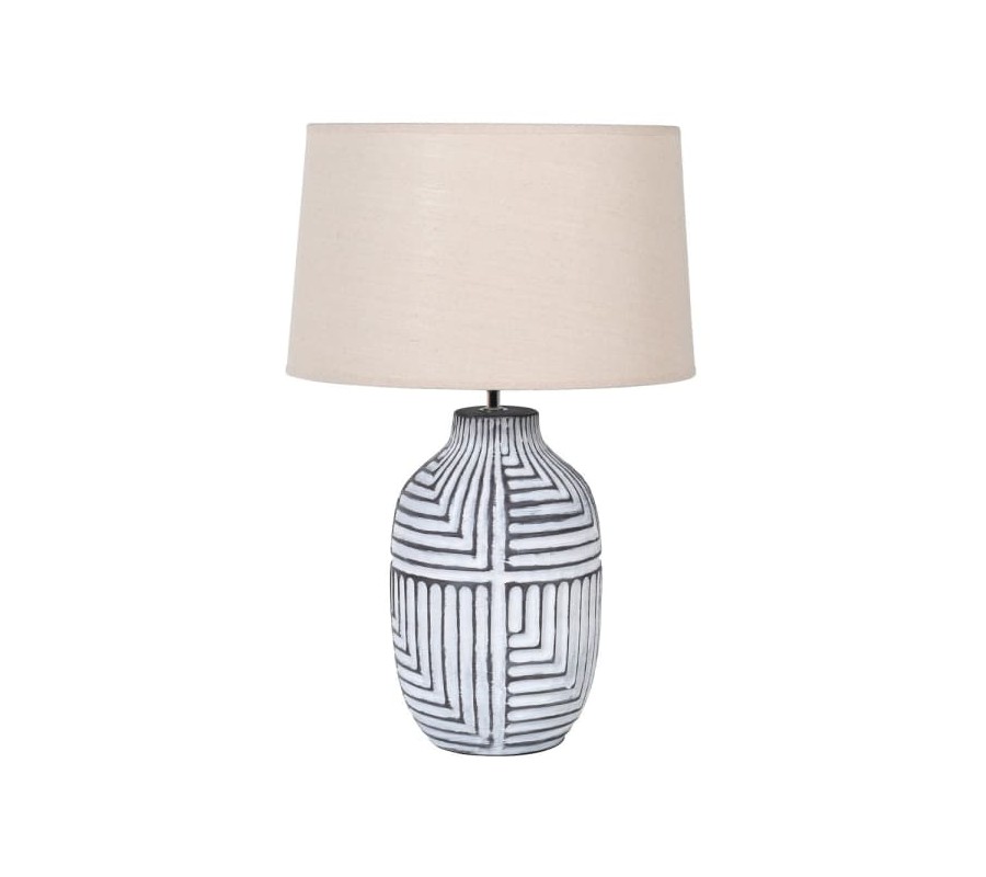 Vintage keramická stolná lampa Savannah s čiernobielou zaoblenou podstavou a s bielym tienidlom 60cm