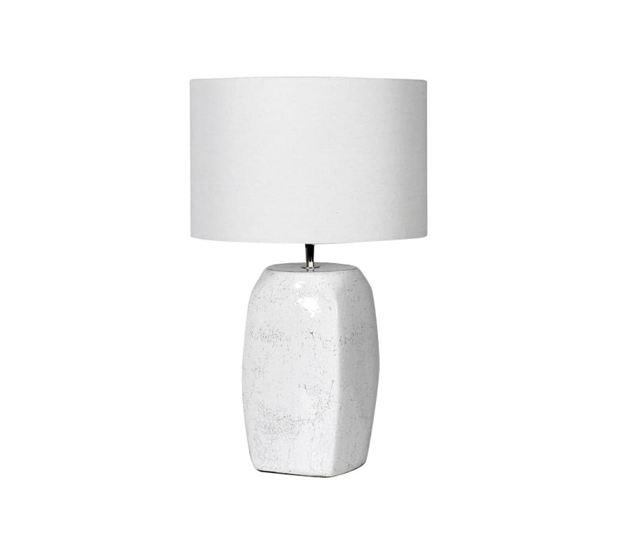 Štýlová stolná lampa Selmer je svietidlom, ktorý do vášho domova vnesie nádych elegancie a noblesy. Zaujme svojou bielou farebnosťou, ktorá vytvára luxusný vzhľad. Podstava je unikátny vďaka svojmu kvádrovitému tvaru so zaoblenými hranami. Je vyrobená z terakoty a biely náter je doplnený o jemnú štruktúru pripomínajúcu mramor. Keramickú podstavu dopĺňa štýlové biele bavlnené tienidlo okrúhleho tvaru. Celá lampa tak pôsobí nadčasovým elegantným dojmom, ktorý vhodne doplní priestory moderných spální, obývačiek či predsiení. Dizajnovú kombináciu vytvorí napríklad so sklenenou konzolou či masívnym bielym nočným stolíkom. Do lampy sú vhodné žiarovky typu E27 max 60W.