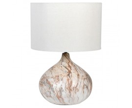 Keramická stolná lampa Monterey v bielo-hnedom prevedení s okrúhlym textilným tienidlom 60cm