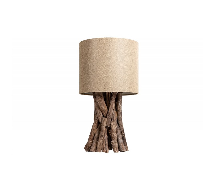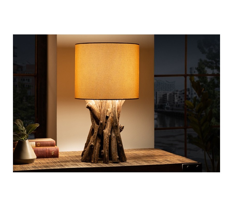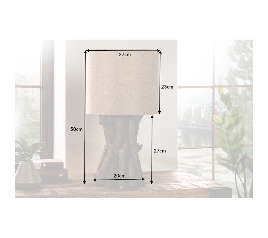 Dizajnová stolná lampa Missle predsavuje unikátny doplnok vhodný do moderných a industriálne ladených domácností. Do vášho interiéru vnesie nezameniteľný prírodný nádych, a to vďaka svojej konštrukcii z masívneho teakového dreva. Podstava je tvorená prepojenými prútmi dreva spolu vytvárajúcimi dojem kmeňa. K prírodnej hnedej farbe harmonicky ladí aj béžové textilné tienidlo jednoduchého okrúhleho tvaru. Tienidlo zabezpečuje jemné tlmenie svetla a lampička tak vo vašej miestnosti vytvorí jedinečný a útulný nádych domova. Stolná lampa Missle sa hodí na doplnenie masívneho či kovového nočného stolíka v spálni, ale svoje miesto si nájde aj v obývačke na príručnom stolíku alebo na dizajnovej konzole v chodbových priestoroch. Vynikne najmä v kombinácii s masívnym a kovovým nábytkom a s doplnkami z prírodných materiálov. Do lampy sú vhodné žiarovky typu E27 max 25W.