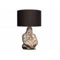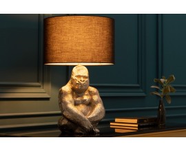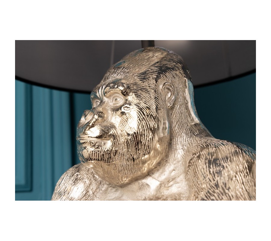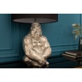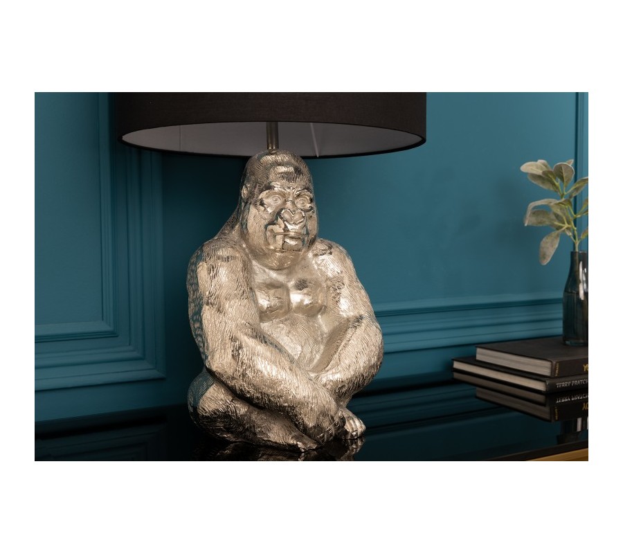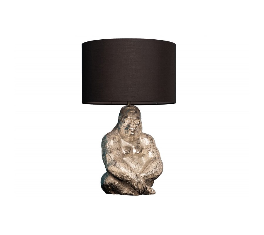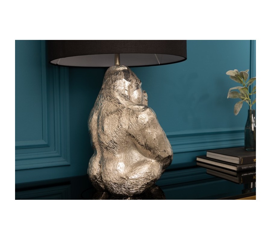 Dizajnová stolná lampa Apell s podstavou z kovu v tvare gorily striebornej farby s čiernym okrúhlym tienidlom 60cm
