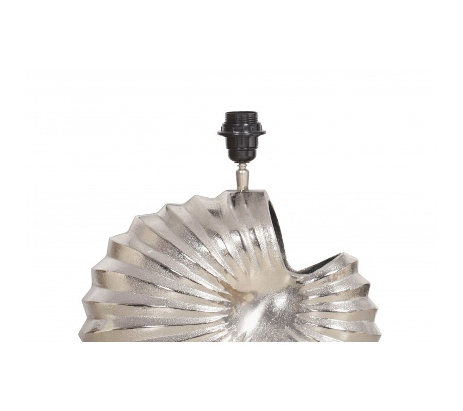 Dizajnová stolná lampa Alexa zaujme už na prvý pohľad vďaka svojej štýlovej podstave v tvare mušle. Nesie sa v elegantnej striebornej farbe, vďaka čomu krásne doplní moderné i art deco ladené priestory. Striebornú podstavu z kovu dopĺňa jednoduché okrúhle textilné tienidlo v čiernej farbe. Vzniká tak elegantný vzhľad, ktorým si štýlovo doplníte nočný či príručný stolík, komodu alebo príborník. Lampa Alexa vám poskytne príjemné, jemne tlmené osvietenie pri chvíľach relaxu s dobrou knihou či rozhovore. Odporúčame ju doplniť k nábytku z kovu a skla, rovnako ako aj k výrazne farebným kreslám či pohovkám zo zamatu, čím umocníte art deco vzhľad vo vašich priestoroch. Do lampy je vhodná žiarovka typu E27.