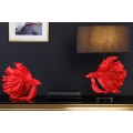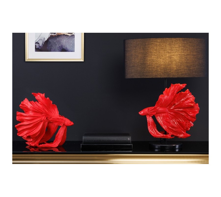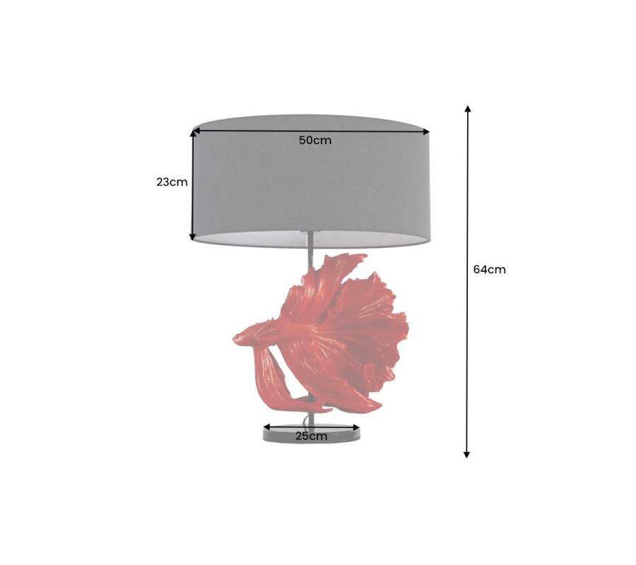 Jedinečná stolná lampa Sidoria je kúskom, ktorý zaujme už na prvý pohľad. Dominantou jej dizajnu je ručne vyrábaná podstava v tvare ryby nesúca sa vo výraznej červenej farbe. Vaše priestory obohatí detailnými vzormi a precízne tvoreným dizajnom. Dizajnovú podstavu dopĺňa jednoduché okrúhle tienidlo čiernej farby, ktoré príjemne stlmí svetlo a vytvorí tak útulnú atmosféru. Lampa Sidoria skvelo vynikne na nočnom stolíku v spálni, rovnako ako aj na príručnom alebo telefónnom stolíku či štýlovej komode v obývačke alebo hosťovskej izbe. Jej jedinečný vzhľad krásne doladí nábytok zo skla či tmavého masívneho dreva. Do lampy je vhodná žiarovka typu E27 max 60W.