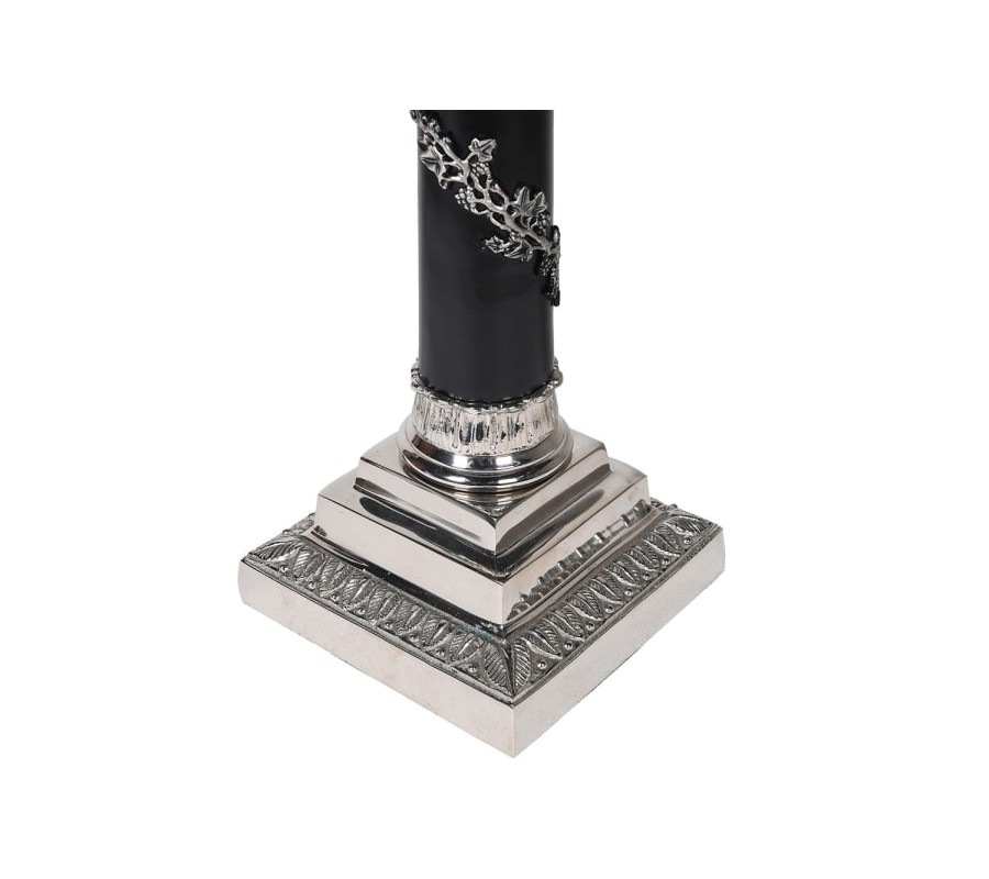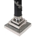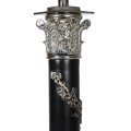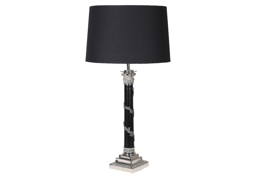 Luxusná stolná lampa Helion s čierno-striebornou ozdobnou podstavou z kovu a čiernym tienidlom 97cm