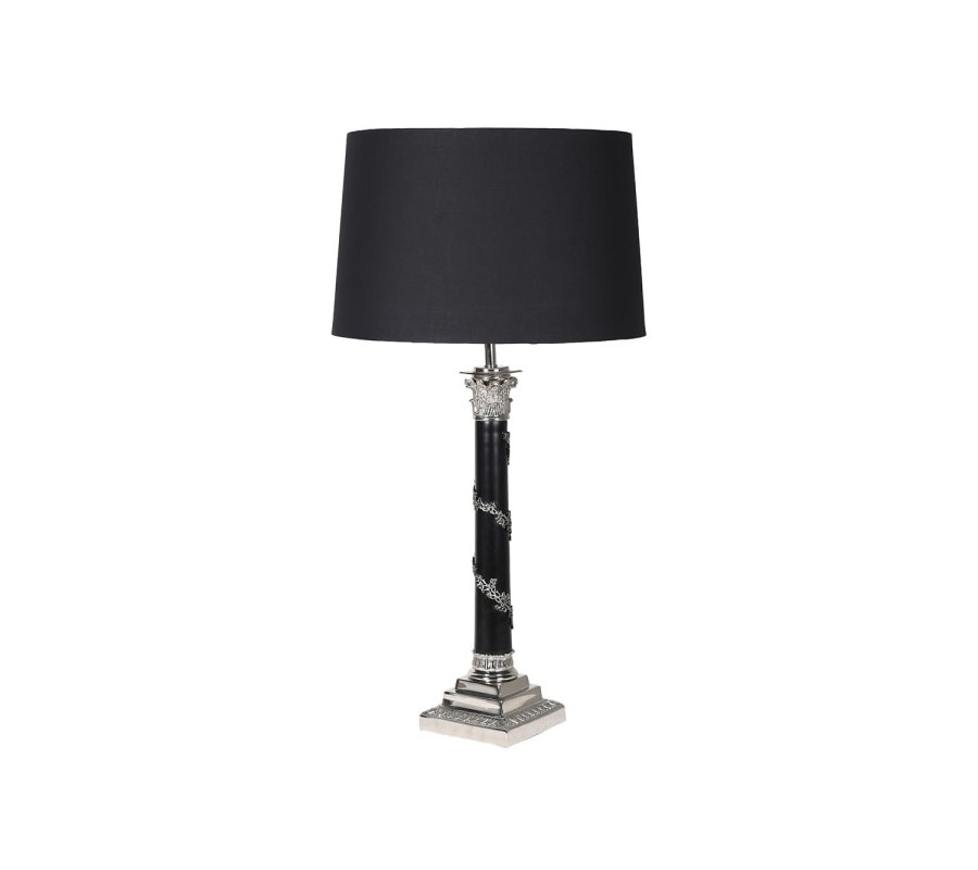 Štýlová stolná lampa Helion vo vašich priestoroch zažiari vďala svojmu elegantnému glamour prevedeniu. Jej podstava vyrobená z kovu kombinuje čiernu a striebornú farbu, čím vzniká luxusný nádych umocnený ndherným precíznym zdobením. Detailné ornamenty zdobia celú konštrukciu a z lampy Helion tak vzniká skutočne jedinečné umelecké dielo, Podstavu dopĺňa jednoduché okrúhle tienidlo čiernej farby z ľanového materiálu, ktoré príjemne stlmí svetlo a vytvorí útulnú atmosféru. Lampa Helion vkusne doplní komody, príborníky či príručné stolíky v obývačke, no svoje miesto si nájde aj v spálni ako nočná lampa či v luxusných reprezentatívnych priestoroch hotelov alebo firiem. Skvelo sa kombinuje s kovovým i skleneným nábytkom a jej strieborné akcenty vkusne doplnia i výraznejšie farby čalúnenia či rôznych textilných doplnkov. Do lampy je vhodná žiarovka typu E27 max 60W.