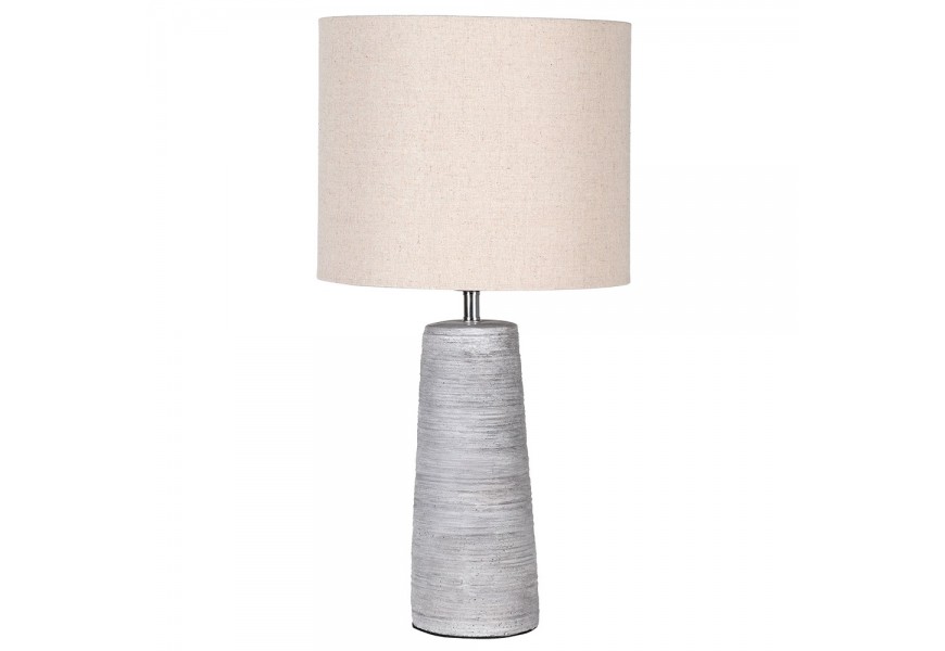 Dizajnová stolná lampa Celeana so sivou podstavou a okrúhlym ľanovým tienidlom 58cm