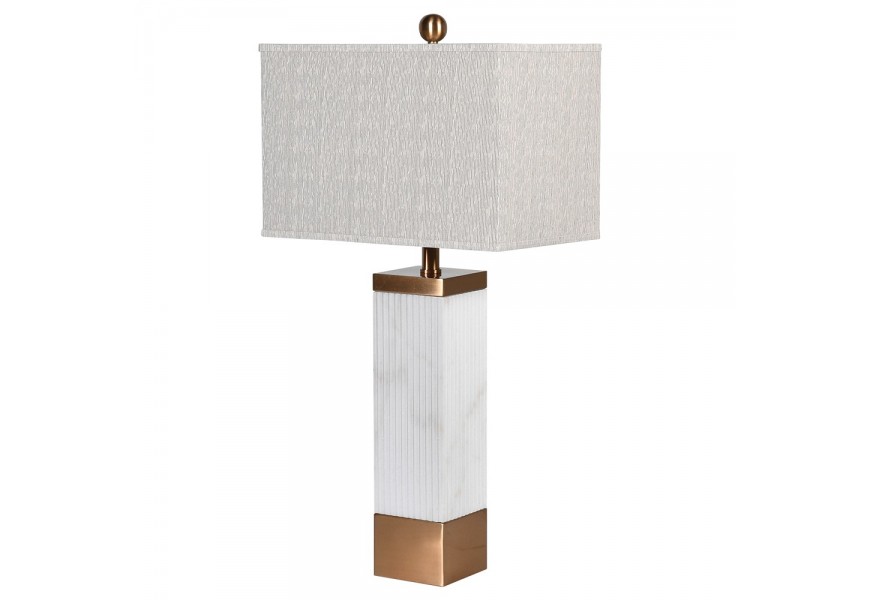 Luxusná art deco stolná lampa Elysion s mramorovým podstavcom a bronzovými detailmi biela 79 cm