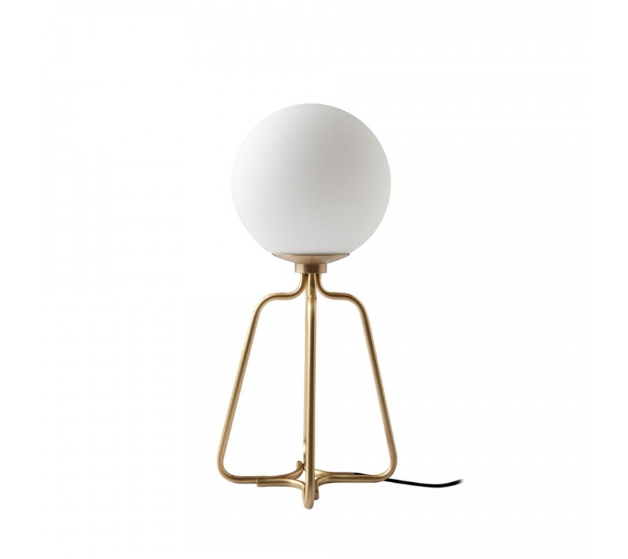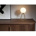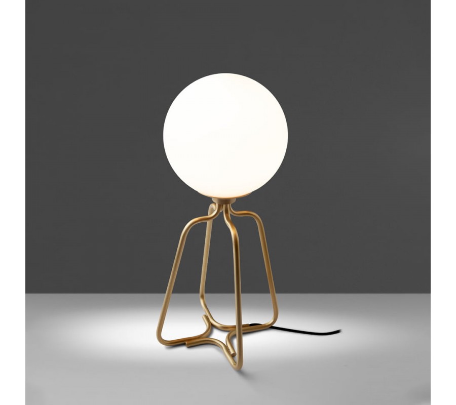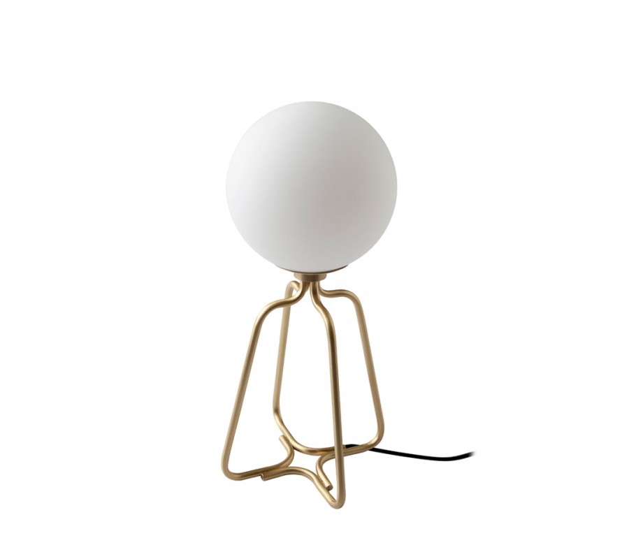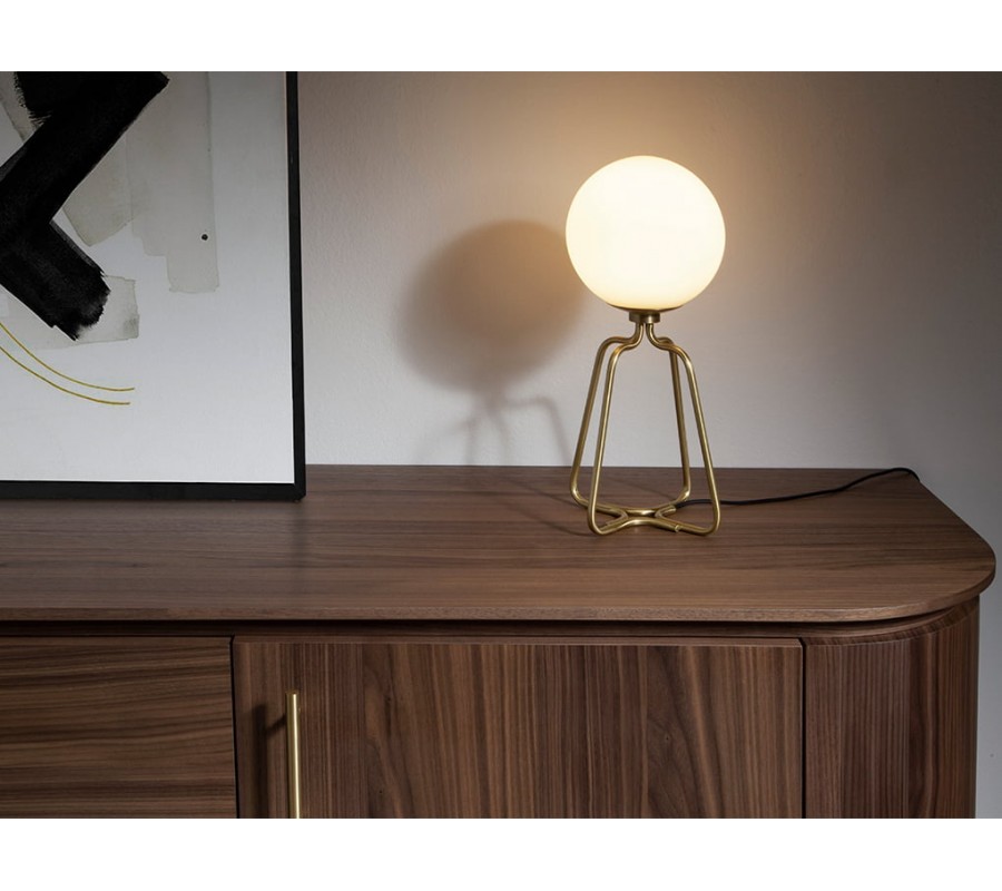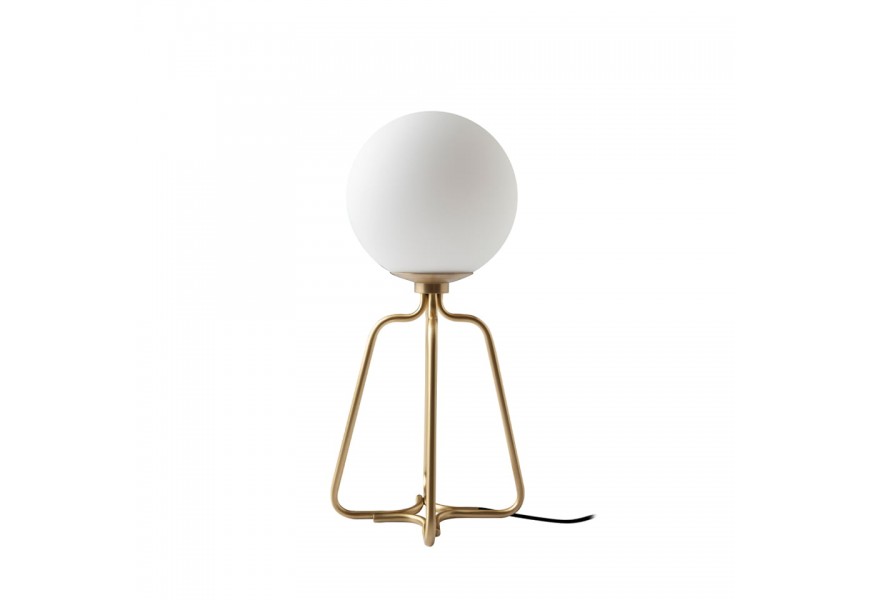 Na prvý pohľad vás upúta sférické tienidlo, ktoré je vyrobené z tónovaného skla. Má tvar dokonalej hladkej gule a jeho biela farba pôsobí čistým a elegantným dojmom. Môžete ho skombinovať so žiarovkou s chladným bielym svetlom, ktoré tento dizajn ešte zdôrazní, alebo so žiarovkou s teplým žltým svetlom, ktoré sa prepojím s tónmi podstavy a vytvorí útulnú atmosféru.