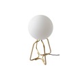 Luxusná moderná stolná lampa Lunaria s bielym skleneným tienidlom v tvare gule a zlatou kovovou podstavou 35 cm