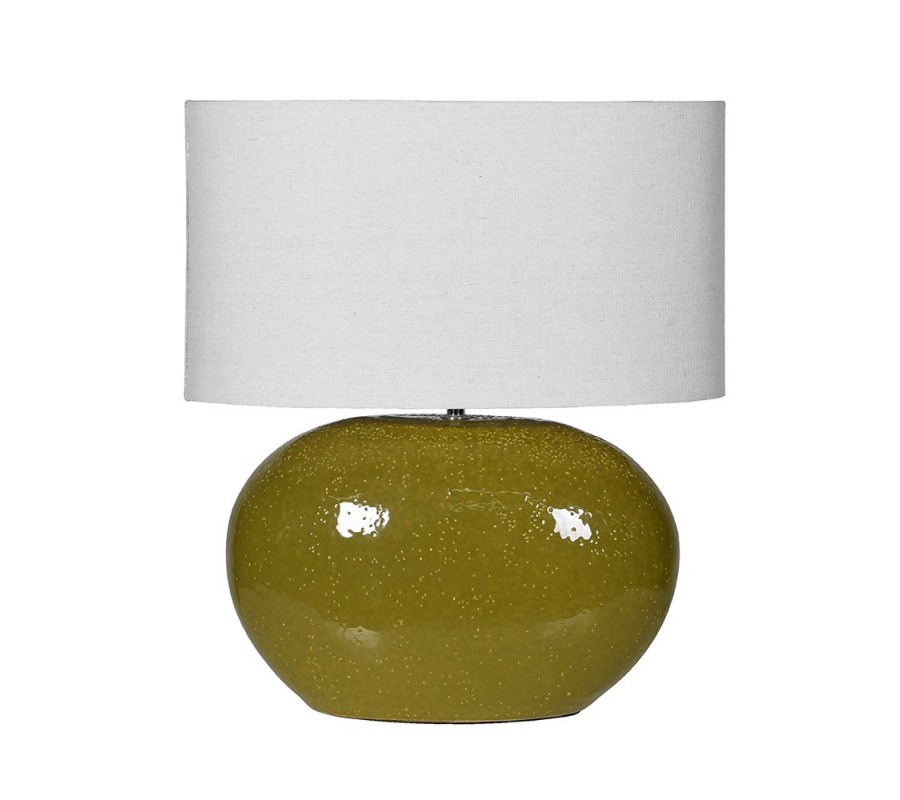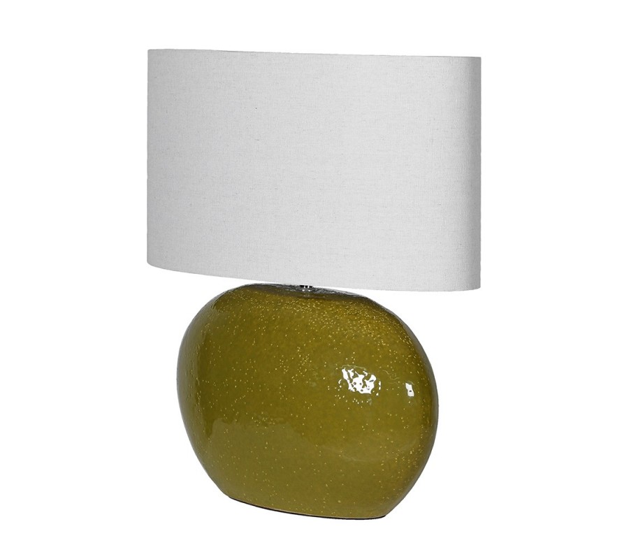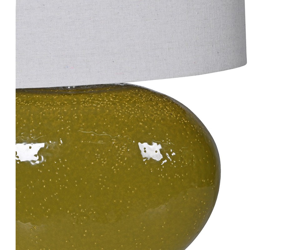 Lampa má podstavec vyrobený z keramiky v olivovo-zelenej farbe. Povrch je lesklý a glazovaný, s jemne zrnitou textúrou, ktorá pridáva hĺbku a charakter. Tvar podstavca je organický, pripomínajúci sploštenú guľu, čo pôsobí jemne a prirodzene.