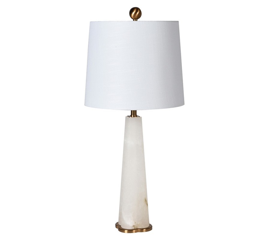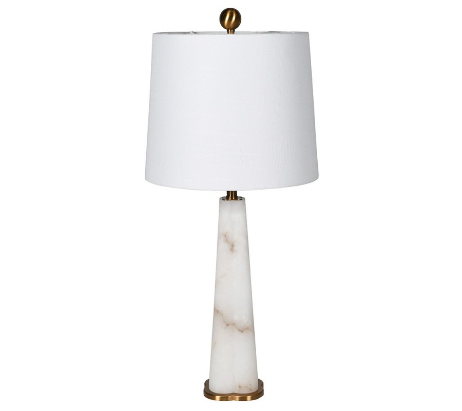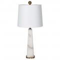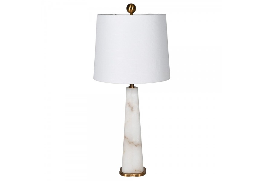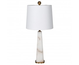 Štýlová art deco stolná mramorová lampa Radel v bielo sivej farbe s bronzovými detailmi a valcovým bielym tienidlom 67 cm