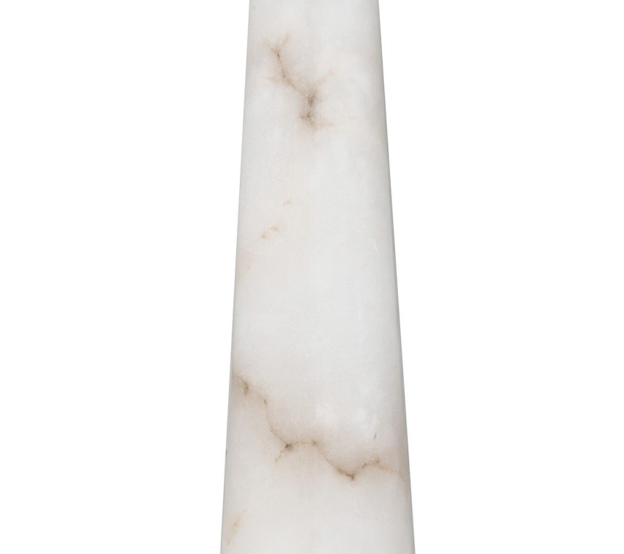Noha lampy je vyrobená z lešteného mramoru v bielom odtieni s jemnými prírodnými vzormi v podobe sivo hnedých žiliek, ktoré dodávajú každému kusu unikátny charakter. Tvar nohy je kužeľovitý, s miernym zúžením smerom k vrchu s jemnými drážkami, ktoré opticky rozdeľujú nohu na štyri časti. Každá časť je zaoblená a v pôdorysnom zobrazení pripomína tvar štvorlístka Povrch mramoru je hladký a matný.